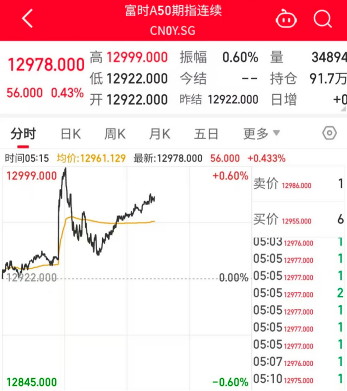 昨日晚间,美国劳工统计局公布数据显示,美国2024年12月CPI同比上涨2.9%,CPI环比上涨0.4%,均符合市场预期;核心CPI同比上涨3.2%,环比上涨0.2%,均低于预期。消息公布后,美股三大股指全线上涨,道指大涨超700点,涨幅为1.65%,纳指涨2.45%,标普500涨1.83%。欧洲主要股指亦集体拉升,德国DAX、英国富时100、荷兰AEX等指数涨超1%。富时中国A50指数期货盘中直线拉升,盘中最高上涨0.6%,收盘涨0.43%。